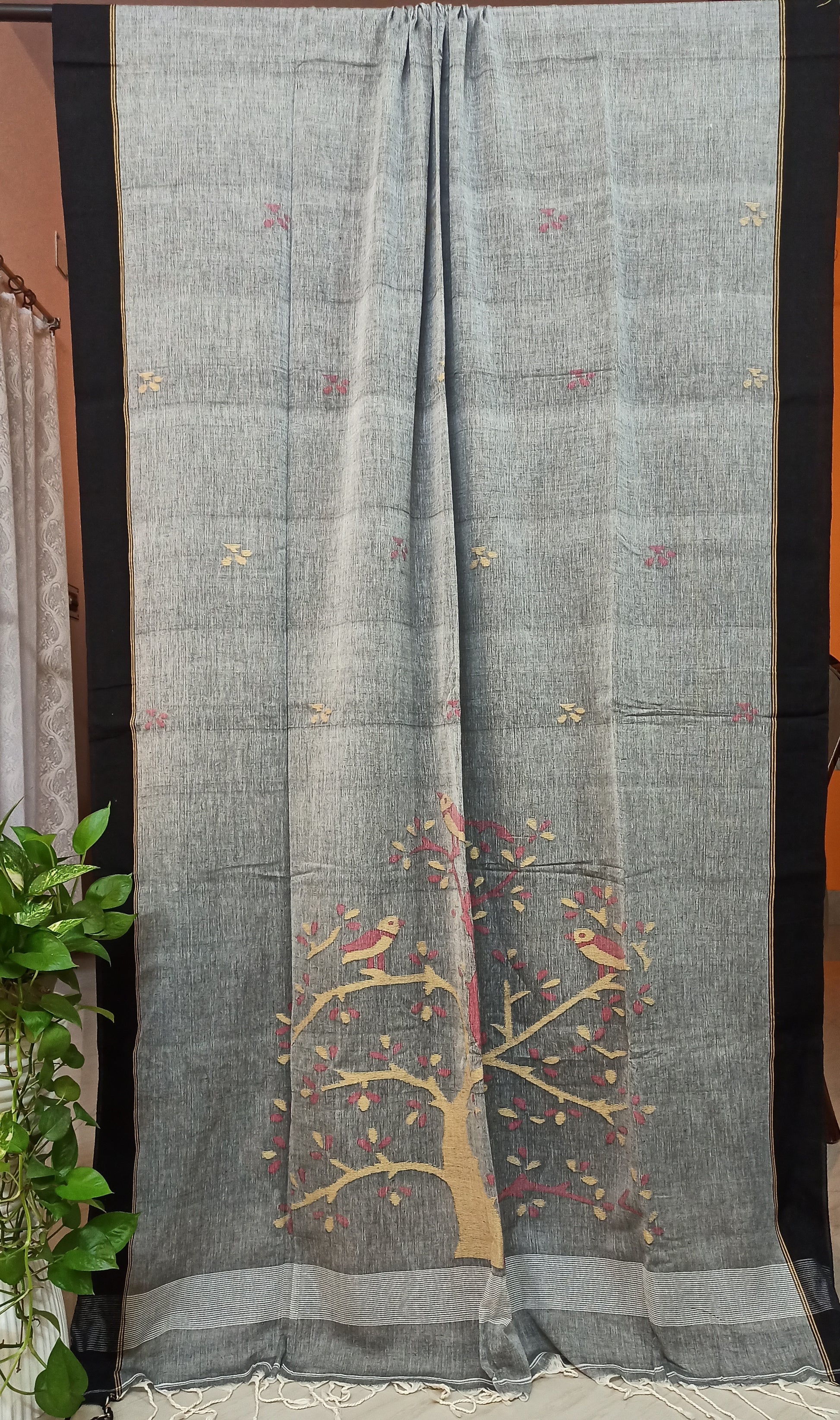 This is a pure cotton handloom Jamdani saree with beautiful woven work.